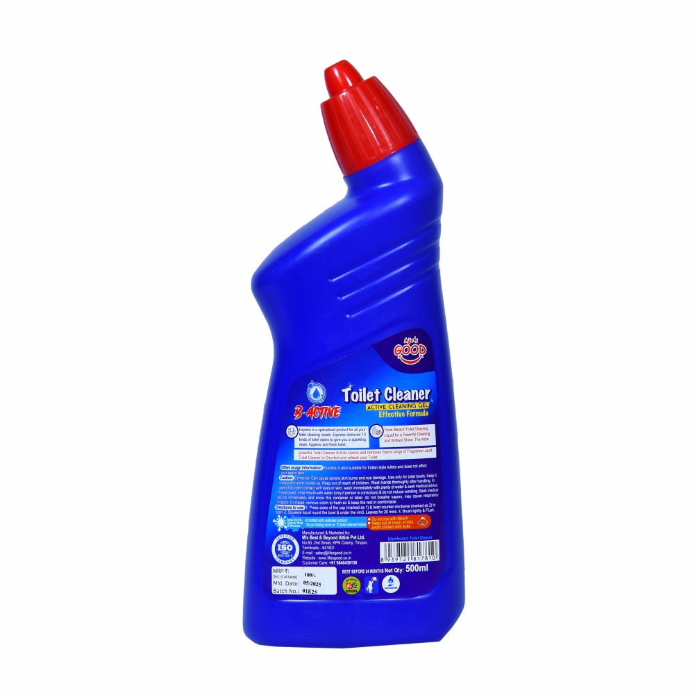 B Active-Toilet cleaner is a cleaning agent designed to clean and disinfect toilet bowls, seats, and surrounding areas. It helps remove stains, bacteria, and unpleasant odors, ensuring a hygienic bathroom. Using B Active-Toilet cleaner regularly helps prevent the spread of germs and diseases.